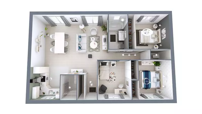 Idée de réalisation en modèle prêt à décorer sur l'un de nos terrains partenaires, sous réserve de disponibilités. Voir détails en agence.