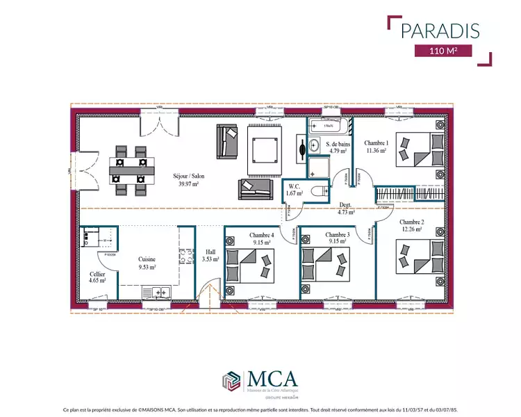 Proposée par MAISONS MCA - PEYREHORADE – 6 pièces - 5 chambres - terrain 610 m²