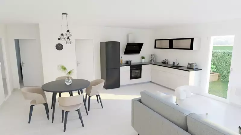 Terrain proposé par un partenaire foncier selon disponibilités et autorisation de publicité au prix de 119 000 €. Hors droit d'enregistrement et frais de notaire. Maison proposée, avec un contrat de construction de maison individuelle, dans le cadre de la loi du 19/12/1990, au prix de 125 700 € (Hors branchements et raccordements, papiers peints, peintures, revêtement de sol dans les chambres, qui sont chiffrés dans les travaux qui restent à charge du client. Tarif modifiable sans préavis). Étiquette énergie : A. Différents modèles disponibles pour ce terrain. Assurances et garanties du constructeur comprises (RC professionnelle, décennale, dommage ouvrage).