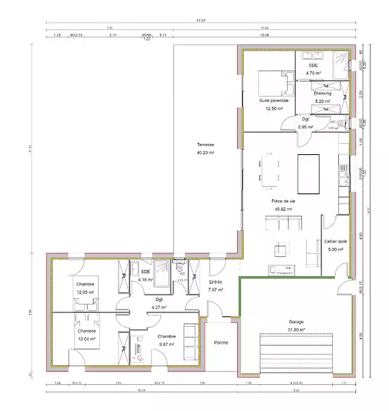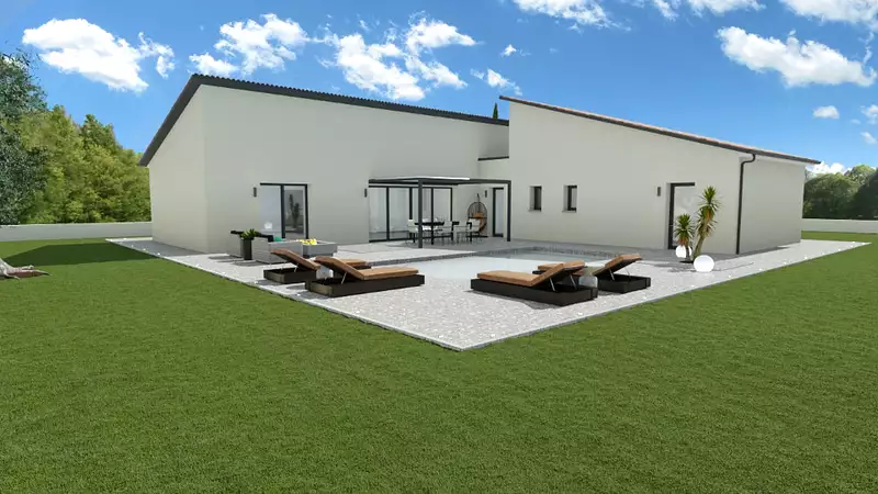 En vente : à quelques kilomètres de Toulouse, Maisons France Confort Tournefeuille vous propose cette maison de 5 pièces de plain-pied de 123 m² et de 600 m² de terrain à Pibrac (31820).