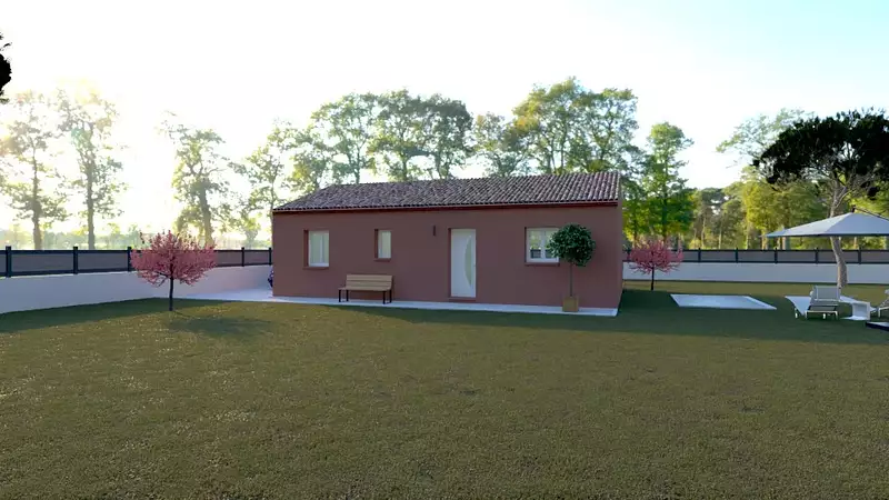 Cet exemple offre une surface totale de 50 m² avec 2 chambres en maison de plain-pied.