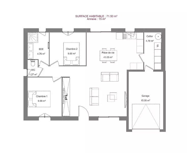 Proposée par MAISONS FRANCE CONFORT – 4 pièces - 2 chambres - terrain 960 m²
