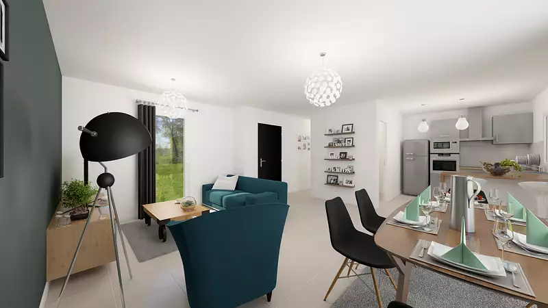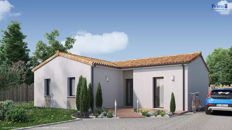 Bien pensée et fonctionnelle. Avec son architecture en L et de plain-pied, la maison CARNEY vous séduira par sa cuisine ouverte sur un bel espace de vie lumineux et ses trois chambresPour vous assurer un confort de vie et conformèment à la RE2025, nous avons chosi un mode de chauffage par PAC + plancher chauffant, volets roulants électriques, Prix hors fourniture et pose : des appareils sanitaires (sauf système de chauffage et d'eau chaude sanitaire), du carrelage et de la faïence, des revêtements de sol dans les chambres. Hors décoration et aménagement intérieur et peinture. Hors raccordements, frais de notaire et dommage ouvrage.