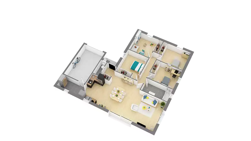 Aucune place de perdue pour cette maison de plain-pied familiale et fonctionnelle qui vous propose un très bel espace de vie lumineux avec une grande baie vitrée donnant sur le jardin. Sa cuisine est ouverte sur le séjour et dispose d'un accès direct au cellier, et au garage intégré. Du côté de l'espace nuit quatre chambres avec rangements, d'une salle de bains et de wc séparés. Pour vous assurer un confort de vie et conformèment à la RE2025, nous avons chosi un mode de chauffage par PAC + plancher chauffant, volets roulants électriques, Prix hors fourniture et pose : des appareils sanitaires (sauf système de chauffage et d'eau chaude sanitaire), du carrelage et de la faïence, des revêtements de sol dans les chambres. Hors décoration et aménagement intérieur et peinture. Hors raccordements, frais de notaire et dommage ouvrage.