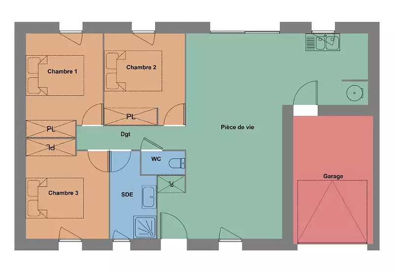 Proche de Saint-Brieuc - À Plélo (22170), maison neuve à vendre de 4 pièces, 68 m² de surface sur 391 m² de terrain. Conçue de plain-pied, elle compte trois chambres, une cuisine et une salle de bains.