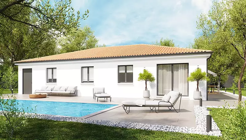 Sur ce terrain, nous vous proposons cette maison neuve, la Ménilière Sud, conçue par Babeau-Seguin, constructeur offrant le meilleur rapport qualité/prix du marché. Cette superbe maison traditionnelle du sud, avec ses galeries et ses tuiles canal, dispose d'une surface de 100 m² et comprend 3 chambres et 4 pièces.