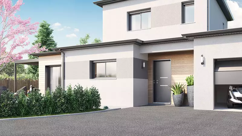 Une maison moderne et astucieuse, prête à accueillir vos projets de vie !. Laissez-vous séduire par cette charmante maison à étage conçue pour allier confort et fonctionnalité. Son vaste espace de vie de plus de 42 m², baigné de lumière, s’ouvre sur l’extérieur pour des moments de convivialité en famille. Profitez du confort d’une suite parentale avec dressing et salle d’eau au rez-de-chaussée, offrant intimité et praticité. À l’étage, deux belles chambres et une salle de bains complètent cet espace pensé pour toute la famille. Un garage de plus de 23 m² vient parfaire ce bien, idéal pour allier rangement et stationnement. Une maison moderne et astucieuse, prête à accueillir vos projets de vie !. Pour un confort optimal et conforme à la RE2025, cette maison dispose d’une PAC avec plancher chauffant au rez-de-chaussée, radiateurs à l’étage et volets roulants électriques. À noter : Le prix indiqué exclut les revêtements de sol des chambres, la cuisine aménagée, la peinture, la décoration, les raccordements, les frais de notaire et l’assurance dommages-ouvrage. (Carport non contractuel, non compris dans le prix).