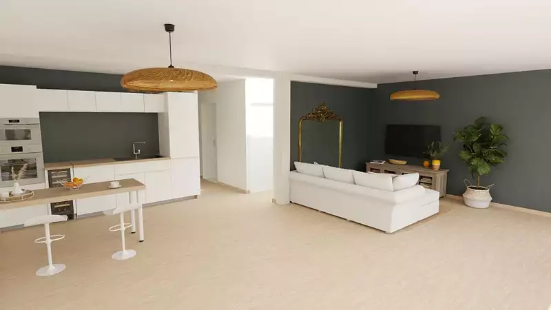 Elle dispose d'un espace de vie orienté SUD de 35 m² avec cuisine ouverte, ainsi qu'une suite parentale (Salle d'eau toute équipée - Faïencée - receveur de douche extra-plat, sèche-serviette). L'étage comporte deux belles chambres de 13m² chacune et une salle de bains indépendante (Meuble double vasque - receveur de douche extra plat) et WC séparé.