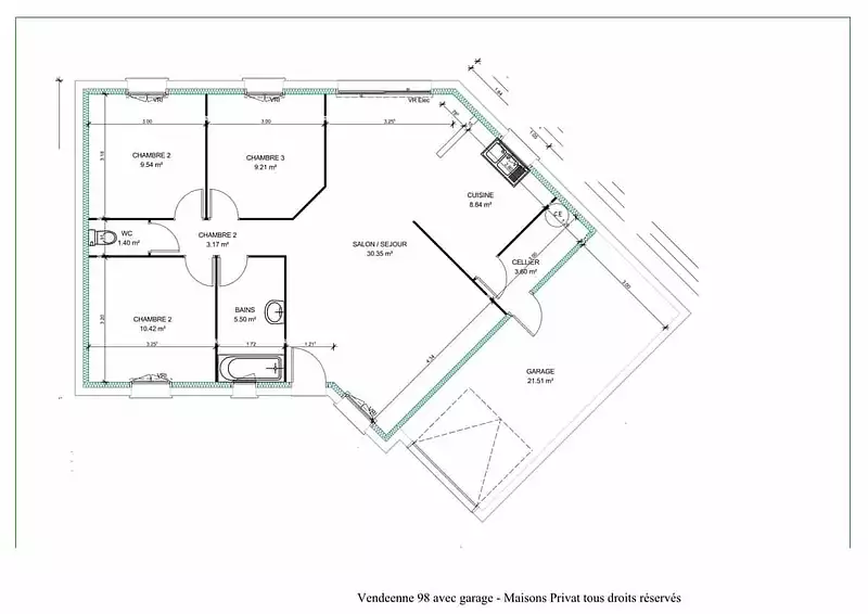 Proposée par MAISONS PRIVAT AGENCE DE PORNIC (44) – 4 pièces - 3 chambres - terrain 545 m²