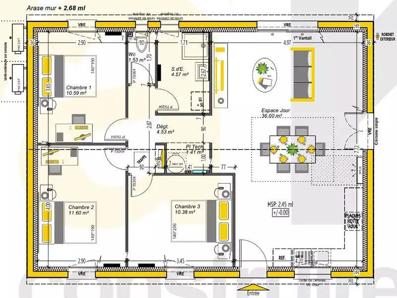 Nous vous proposons un projet de construction moderne et fonctionnel :