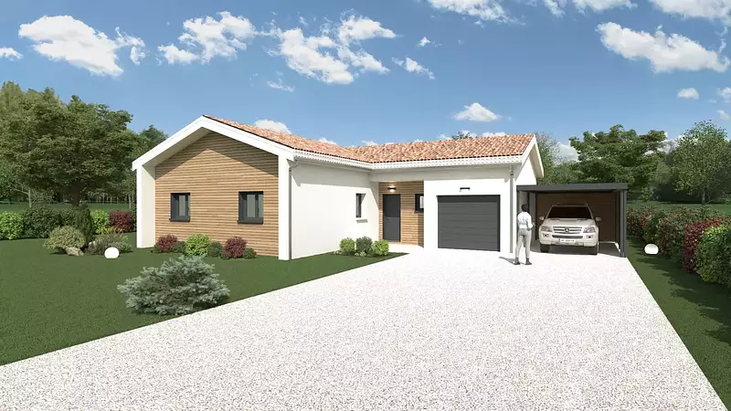 Dans le haut bocage vendéen et proche du Puy du fou, profitez des dernières opportunités avec ce terrain de 413 m², proche des écoles, commerces et services, idéalement exposé, et réalisons ensemble votre projet de construction Nous vous proposons cette construction en ossature bois de 93 m² habitable et ses 19 m² de garage, qui est composé de 3 chambres, comprises entre 10 et 13 m² avec rangement placard, d'une salle de bain avec baignoire et meuble vasque (possibilité de modifier et personnalisé votre plan intérieur), avec un WC indépendant. Côté jour, vous disposez d'un accès direct garage, cellier et cuisine ouverte sur une pièce de vie de 43 m², très lumineuse avec accès sur votre rez de jardin. Son architecture en forme de L permet d’optimiser l’orientation sur la majorité des terrains Cette construction est équipée d'un chauffage par pompe à chaleur avec plancher chauffant (possibilité de changer votre mode de chauffage) Contactez Maisons Naturéa au 02 28 19 62 78 ou sur pour une étude gratuite et personnalisée