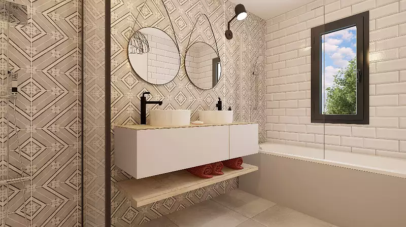 (Carrelage inclus dans toutes les pièces / Raccordements inclus / Gainable compris).