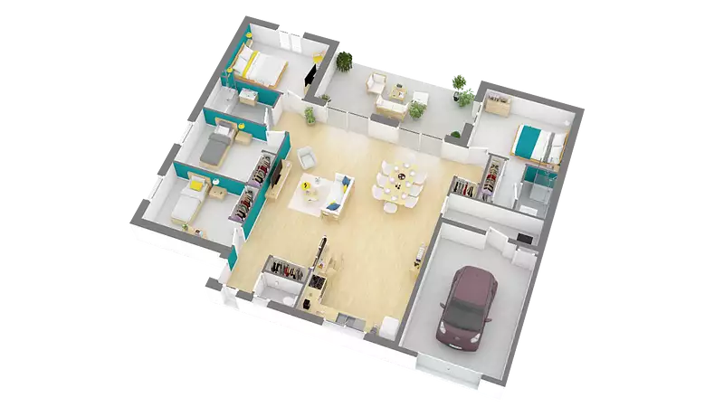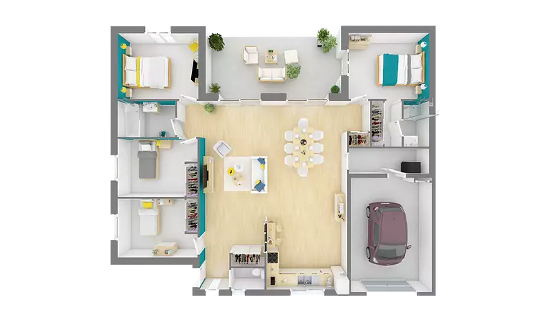 Conçue par Styl Habitat, cette maison de 95 m² en U se distingue par son agencement ingénieux et ses équipements modernes. Pensée pour le bien-être de toute la famille, elle offre un cadre de vie harmonieux, alliant confort et praticité.