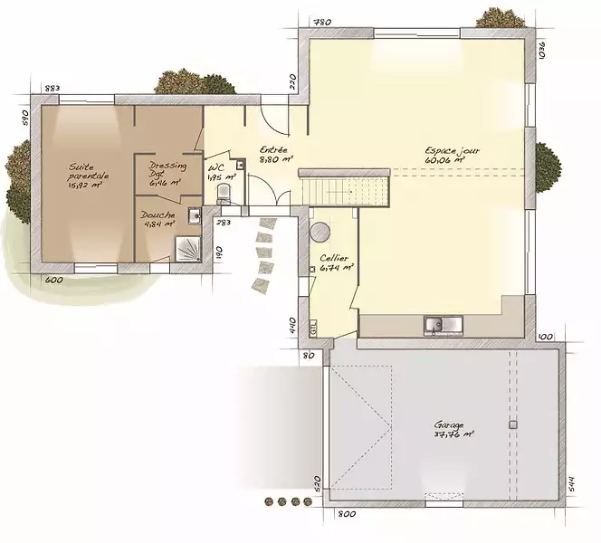 Terrain proposé par un partenaire foncier selon disponibilités et autorisation de publicité au prix de 260 000 €. Hors droit d'enregistrement et frais de notaire. Terrain + Maison proposés au prix de 365 800 € (Hors branchements et raccordements, papiers peints, peintures, revêtement de sol dans les chambres. Tarif modifiable sans préavis). Etiquette énergie : A. Différents modèles disponibles pour ce terrain. . HEXAOM Services est enregistré auprès de l'ORIAS en tant que Courtier en financement, Niveau 1, sous le numéro 14001345.