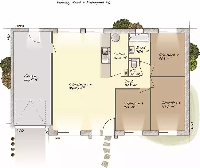 Proposée par MAISONS BALENCY – 5 pièces - 3 chambres - terrain 800 m²