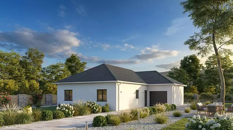 Sur ce terrain, nous vous proposons cette maison neuve, modèle Caprice, conçue par Pavillons Parot. Avec une surface de 109 m², cette habitation de plain-pied est idéale pour les familles à la recherche d'un espace pratique et fonctionnel, tout en étant sobre et très classe.