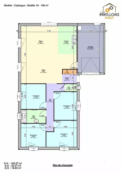 Proposée par PAVILLONS PAROT - CONSTRUCTEUR DE MAISONS EN HAUTE – 5 pièces - 4 chambres - terrain 672 m²