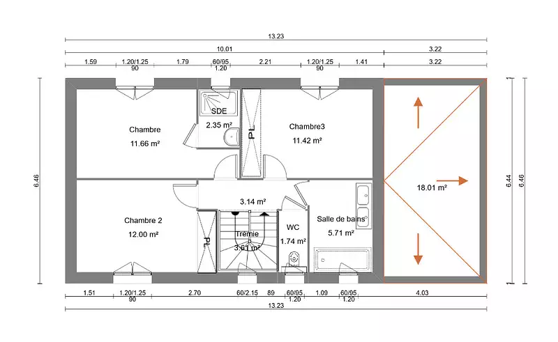 - Chambres : 3