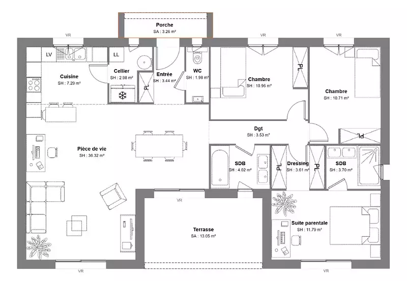 Terrain proposé par un partenaire foncier selon disponibilités et autorisation de publicité au prix de 270 000 €. Hors droit d'enregistrement et frais de notaire. Maison proposée, avec un contrat de construction de maison individuelle, dans le cadre de la loi du 19/12/1990, au prix de 219 000 € (Hors branchements et raccordements, papiers peints, peintures, revêtement de sol dans les chambres, qui sont chiffrés dans les travaux qui restent à charge du client. Tarif modifiable sans préavis). Étiquette énergie : A. Différents modèles disponibles pour ce terrain. Assurances et garanties du constructeur comprises (RC professionnelle, décennale, dommage ouvrage).