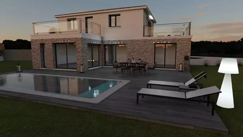 Terrain proposé par un partenaire foncier selon disponibilités et autorisation de publicité au prix de 279 000 €. Hors droit d'enregistrement et frais de notaire. Terrain + Maison proposés au prix de 630 000 € (Hors branchements et raccordements, papiers peints, peintures, revêtement de sol dans les chambres. Tarif modifiable sans préavis). Etiquette énergie : A. Différents modèles disponibles pour ce terrain. Assurances et garanties du constructeur (RC professionnelle, décennale, dommage ouvrage, garantie de remboursement de l'acompte, livraison à prix et délai convenu) : HEXAOM Services est enregistré auprès de l'ORIAS en tant que Courtier en financement, Niveau 1, sous le numéro 14001345.