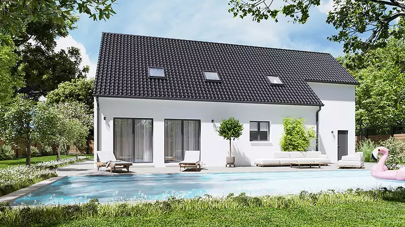 Cette maison neuve est basse consommation et conforme à la RE2020, garantissant des performances énergétiques optimales et un respect de l'environnement. Le plan est entièrement personnalisable pour répondre à votre style de vie et à vos besoins spécifiques.