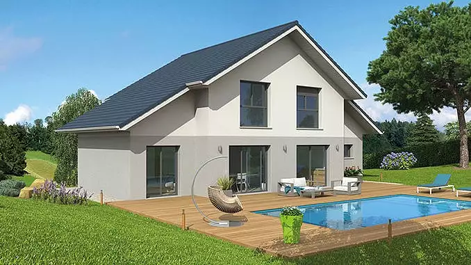 Lancé en 2017 avec la ligne de maisons « montagne », le modèle Natival tranche radicalement avec les modèles traditionnels et contemporains qui composent la gamme de maison Natilia. La Natival emprunte architecturalement aux chalets que l'on trouve dans les Alpes avec son toit à forte inclinaison taillé pour résister aux fortes chutes de neige. Mais ne vous y tromper pas, contrairement aux chalets d'antan, la Natival est un concentré de modernité : très ouverte sur l'extérieur, la maison possède 3 baies vitrées au rez-de-chaussée dont une pour la chambre double ainsi que deux grandes fenêtres à l'étage. La lumière inonde ainsi les pièces de vie et les chambres été comme hiver.