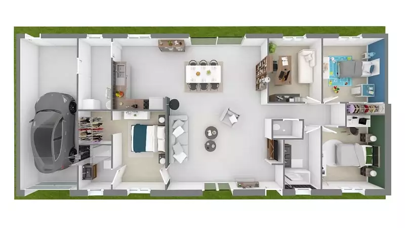 Emplacement privilégié - Maison neuve 4 pièces à vendre à Quincy (18120) avec une surface de 118 m² sur un terrain de 1 586 m². Conçue de plain-pied, elle offre quatre chambres, une cuisine et deux salles de bains.