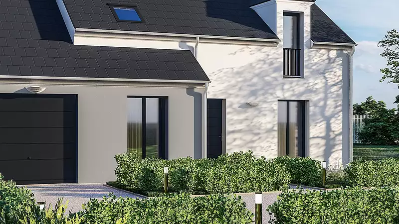 Les menuiseries sont en PVC de couleur blanche. La toiture est réalisée en tuiles béton double romane. Plusieurs couleurs d'enduit extérieur sont proposées.