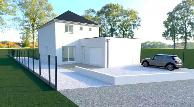 Terrain proposé par un partenaire foncier selon disponibilités et autorisation de publicité au prix de 190 000 €. Hors droit d'enregistrement et frais de notaire. Terrain + Maison proposés au prix de 410 000 € (Hors branchements et raccordements, papiers peints, peintures, revêtement de sol dans les chambres. Tarif modifiable sans préavis). Etiquette énergie : A. Différents modèles disponibles pour ce terrain. Assurances et garanties du constructeur (RC professionnelle, décennale, dommage ouvrage, garantie de remboursement de l'acompte, livraison à prix et délai convenu) : HEXAOM Services est enregistré auprès de l'ORIAS en tant que Courtier en financement, Niveau 1, sous le numéro 14001345.