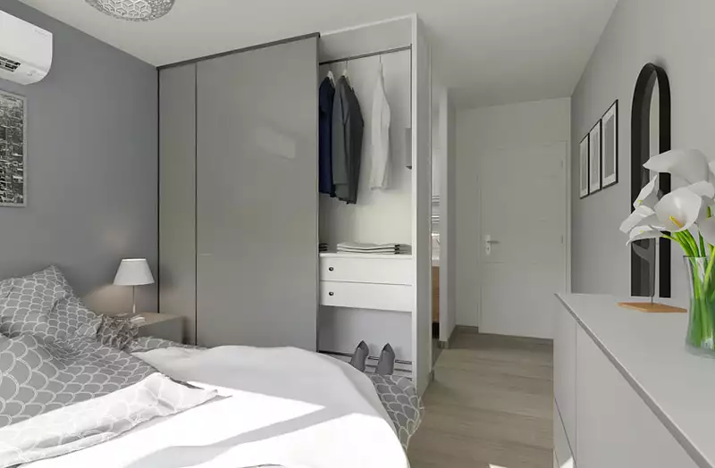 Pour votre confort, le modèle Opale est muni d'une climatisation réversible*. Associée à la haute qualité de l'isolation, l'ensemble garanti un confort en toute saison. La box domotique permet de piloter les équipements connectés, notamment les volets roulants motorisés. La porte de garage sectionnelle est également isolée, motorisée et pilotable depuis l'application fournie.