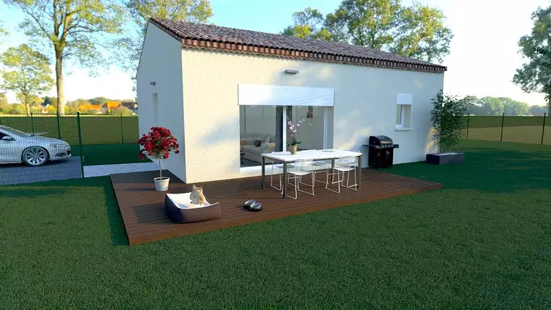 Terrain proposé par un partenaire foncier selon disponibilités et autorisation de publicité au prix de 96 000 €. Hors droit d'enregistrement et frais de notaire. Maison proposée, avec un contrat de construction de maison individuelle, dans le cadre de la loi du 19/12/1990, au prix de 123 000 € (Hors branchements et raccordements, papiers peints, peintures, revêtement de sol dans les chambres, qui sont chiffrés dans les travaux qui restent à charge du client. Tarif modifiable sans préavis). Étiquette énergie : A. Différents modèles disponibles pour ce terrain. Assurances et garanties du constructeur comprises (RC professionnelle, décennale, dommage ouvrage).
