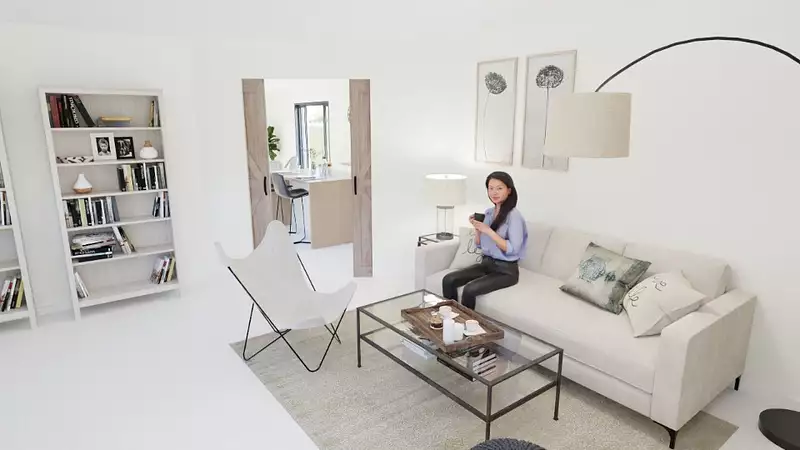Son intérieur se compose de trois chambres, 2 salles d'eau, une cuisine ouverte sur un bel espace de vie avec un salon de plus de 30 m².