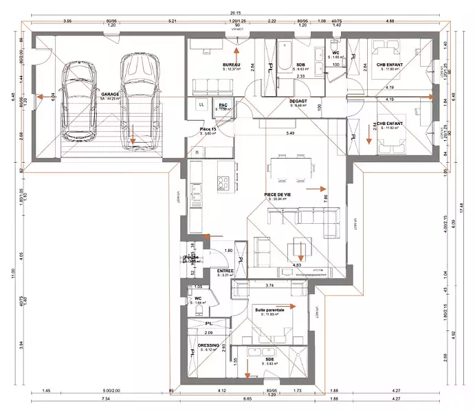 Proposée par MAISONS FRANCE CONFORT – 5 pièces - 4 chambres - terrain 800 m²