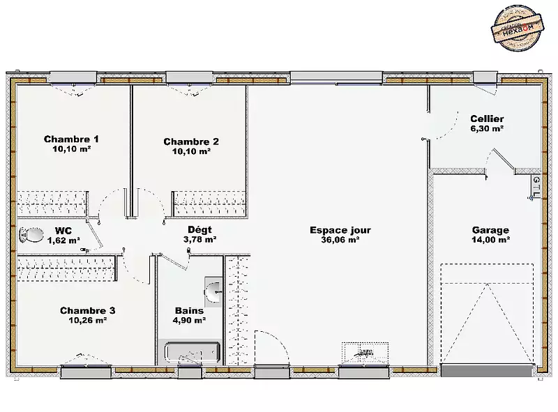 Proposée par MAISONS DE L'AVENIR – 4 pièces - 3 chambres - terrain 270 m²