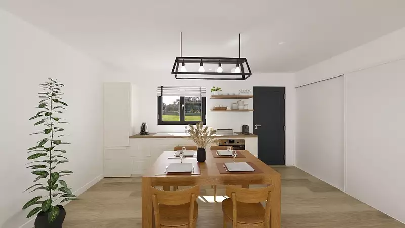 Terrain proposé par un partenaire foncier selon disponibilités et autorisation de publicité au prix de 110 000 €. Hors droit d'enregistrement et frais de notaire. Terrain + Maison proposés au prix de 216 500 € (Hors branchements et raccordements, papiers peints, peintures, revêtement de sol dans les chambres. Tarif modifiable sans préavis). Etiquette énergie : A. Différents modèles disponibles pour ce terrain.