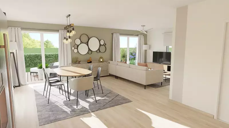 Terrain proposé par un partenaire foncier selon disponibilités et autorisation de publicité au prix de 214 000 €. Hors droit d'enregistrement et frais de notaire. Terrain + Maison proposés au prix de 331 900 € (Hors branchements et raccordements, papiers peints, peintures, revêtement de sol dans les chambres. Tarif modifiable sans préavis). Etiquette énergie : A. Différents modèles disponibles pour ce terrain.