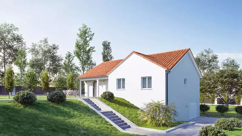 Sur ce terrain, nous vous proposons cette maison neuve, modèle Eclipse, construite par Pavillons Parot. D’architecture classique, cette superbe maison traditionnelle familiale a été spécialement pensée pour les terrains en pente. Elle est particulièrement appréciée dans les Vosges.