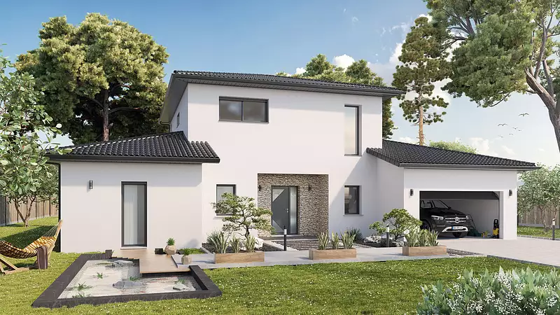 Une architecture qui allie élégance et fonctionnalité !. Laissez-vous séduire par cette maison contemporaine aux lignes épurées, où chaque espace est pensé pour optimiser lumière et confort. Avec 4 chambres, dont une suite parentale avec dressing et salle d’eau, ainsi qu’un espace de vie spacieux et convivial, elle répond aux attentes des familles modernes. Son design harmonieux intègre de grandes ouvertures sur l’extérieur, créant une connexion fluide entre intérieur et jardin. Fonctionnelle et personnalisable, elle s’adapte à votre mode de vie et vos envies. Un projet conçu pour s’intégrer parfaitement à votre terrain, alliant modernité et performance énergétique. Pour un confort optimal et conforme à la RE2025, cette maison dispose d’une PAC avec plancher chauffant au rez-de-chaussée, radiateurs à l’étage et volets roulants électriques. À noter : Le prix indiqué exclut les revêtements de sol des chambres, la cuisine aménagée, la peinture, la décoration, les raccordements, les frais de notaire et l’assurance dommages-ouvrage. (Piscine non contractuelle, non incluse dans le prix. ). Besoin d’inspiration ? Contactez-nous dès maintenant pour concrétiser votre projet !.