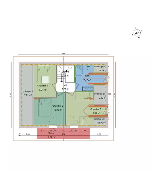 - Chambres : 3