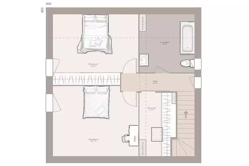 Proposée par MAISONS FRANCE CONFORT – 3 pièces - 2 chambres - terrain 744 m²