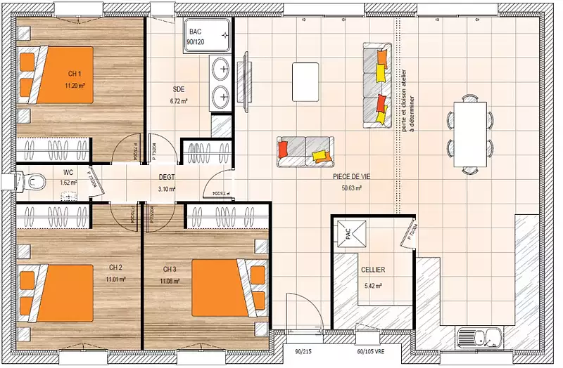 Proposée par MAISONS BERNARD JAMBERT – 5 pièces - 3 chambres - terrain 447 m²