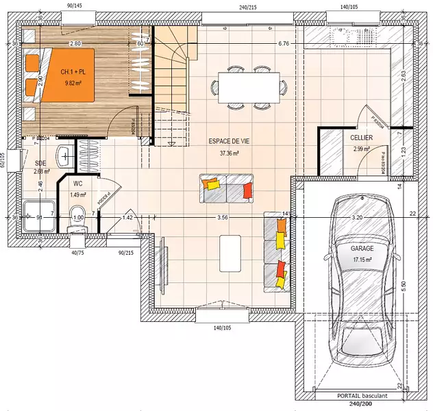 Proposée par MAISONS BERNARD JAMBERT – 6 pièces - 4 chambres - terrain 447 m²