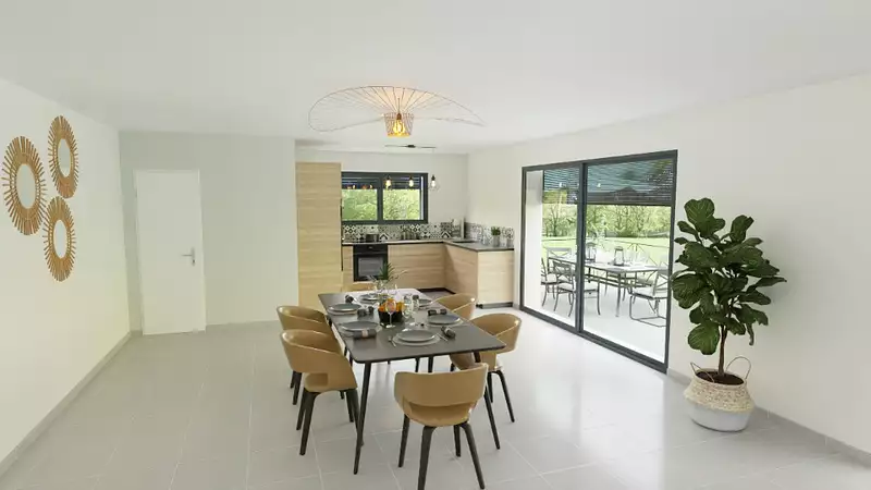 Terrain proposé par un partenaire foncier selon disponibilités et autorisation de publicité au prix de 149 000 €. Hors droit d'enregistrement et frais de notaire. Terrain + Maison proposés au prix de 282 300 € (Hors branchements et raccordements, papiers peints, peintures, revêtement de sol dans les chambres. Tarif modifiable sans préavis). Etiquette énergie : A. Différents modèles disponibles pour ce terrain. . HEXAOM Services est enregistré auprès de l'ORIAS en tant que Courtier en financement, Niveau 1, sous le numéro 14001345.