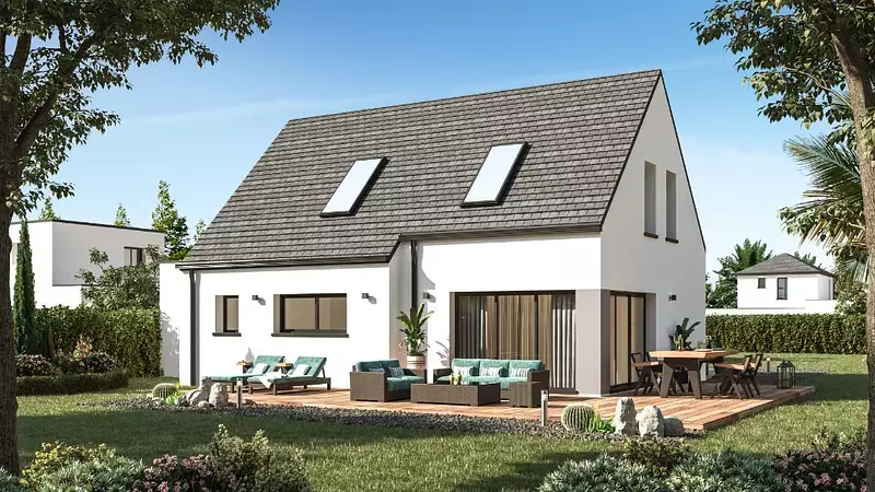 Terrain proposé par un partenaire foncier selon disponibilités et autorisation de publicité au prix de 74 350 €. Hors droit d'enregistrement et frais de notaire. Terrain + Maison proposés au prix de 266 200 € (Hors branchements et raccordements, papiers peints, peintures, revêtement de sol dans les chambres. Tarif modifiable sans préavis). Etiquette énergie : A. Différents modèles disponibles pour ce terrain.