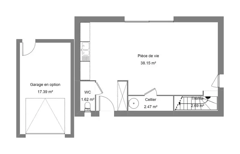 Elle dispose au rez de chaussée d'un hall d'entrée, une pièce de vie de 38m² avec cuisine us, et coté pratique vous y trouverez également un cellier.