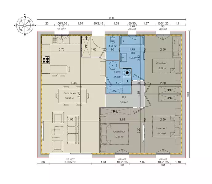 Proposée par MAISONS FRANCE CONFORT – 3 pièces - 3 chambres - terrain 400 m²