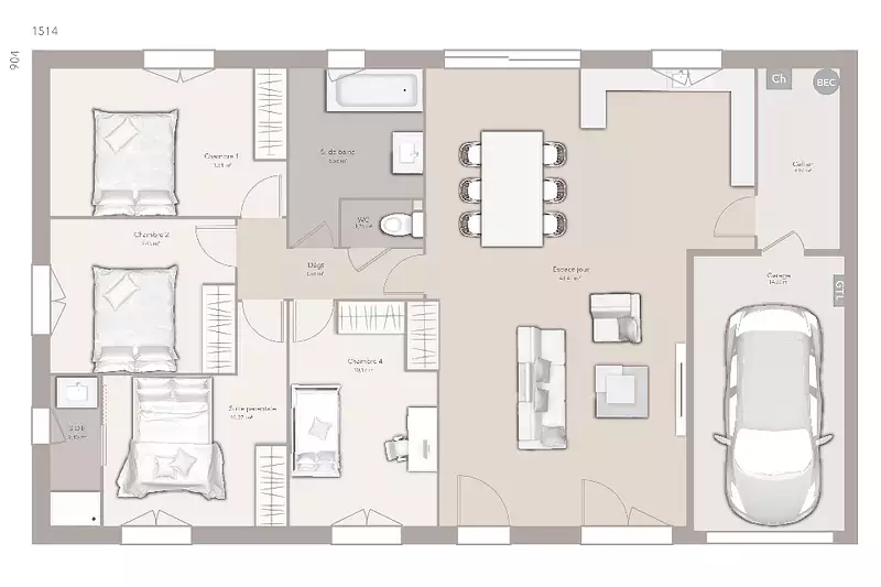 Surface habitable : 103 m² de plain-pied