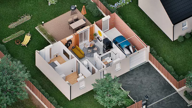 - Prix du modèle de maison : 123 600 €