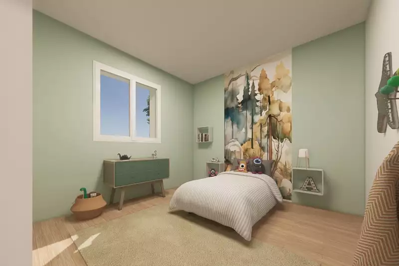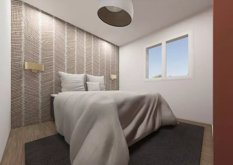 Son intérieur dispose de quatre chambres, d'une cuisine ouverte sur une pièce de vie lumineuse et d'une salle de bains.