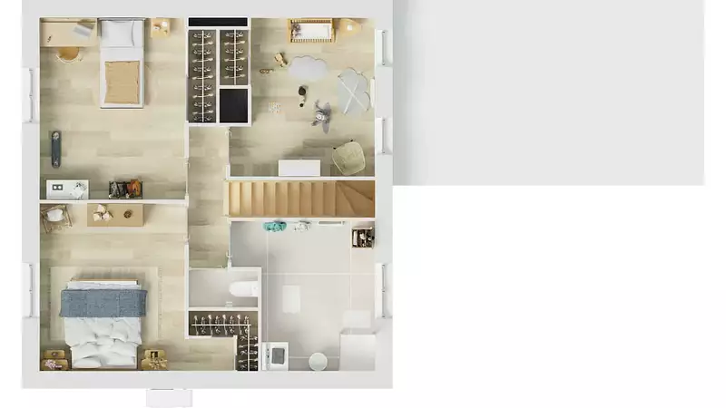 La maison dispose également d’un garage accolé de 19,69 m², idéal pour le stationnement ou le rangement. Conforme à la réglementation RE2020, ce modèle garantit un excellent niveau de performance énergétique et une consommation réduite. Pratique, moderne et économique, la My First 80 est une solution idéale pour un premier achat ou un projet sur petit terrain, alliant confort, luminosité et budget maîtrisé.